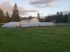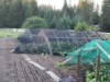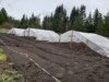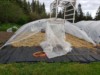 Greenhouse building day in the main patch: 3 20x25' hoops for 6 pumpkins/squash.