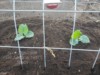 Long gourds got planted out today and I've got two spots on my trellis. I started 2 155 Lazic seeds, and 2 of the big LeBlanc seeds from last season. Both Lazics look way better, so I'm going with them in both spots. Here's one: