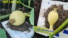 Friday afternoon and evening we had 4 severe storms roll through the area, one right after the other, bringing lots of rain, damaging hail, and 8 tornadoes. Our patch got hit 4 times with hail ranging from pea size on up to lime size. The plants in the screenhouse are fine. My 150 square foot challenge plant (1952.5 Kogut) took major damage. Main vine was severed and most of the leaves are tore up. I'm going to try to keep it going and train a new main vine.