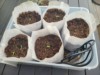 The loupes got started last week and are starting to come up. They're a bit of a motely lot. Bought two lots of the English WR seeds at auction this year. The first got beat up during shipping (of course the WR seeds were the ones affected) and the second ended up sending 2X packs of 56.2. Thankfully Doug had hooked me up with an extra set of seeds, but I went a head and tried to germinate the crushed 71.6s and a few popped up. The goal is to have 2X 71.6s and 1X 56.2 in the garden and to get at least one fruit to the MN state fair (though we'll harvest if and when the fruit are ready. Hope to do them justice, and thanks for all the advice, Doug!