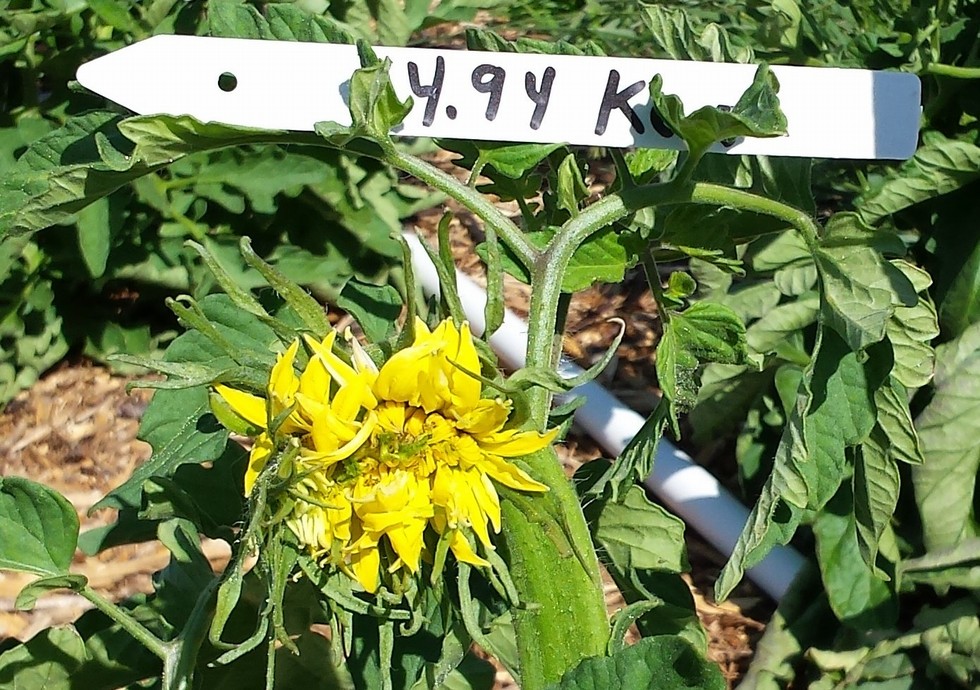 4.94 kent. That huge flower has opened. Not sure if its producing any pollen as i don't see any. Hope there is some there. I only have 1 other flower open on another 4.94 plant and i think its past time on it. This is my smallest youngest plant. Its also the most neglected and abused plant. This was 1 of 3 that came up together. When the seedlings were about 3 inches tall , i washed all the dirt off the roots to get a plant for an experiment. The other 2, bare root were sitting in a cup of water. A storm blew over the cup and most of the water ran out. 1 plant died in the sun. I came home and 1 was alive so i stuck it in the ground. Thats this plant ! LOL
