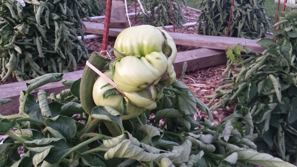 4.94 kent had to do something to give the fruit space. Its already cracked the fruit stem. I cut the top off the plant. It would have been seperated in another week anyway.
