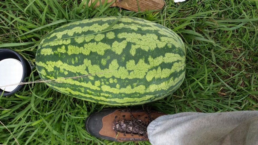Just for spence ! This melon didn't make it. 55 lbs oh well, it made a good boot picture !