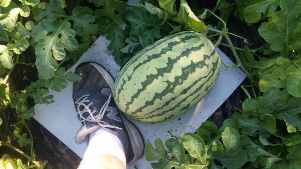Hear is my melon vines are not looking good but at least i got one polinated nice eater