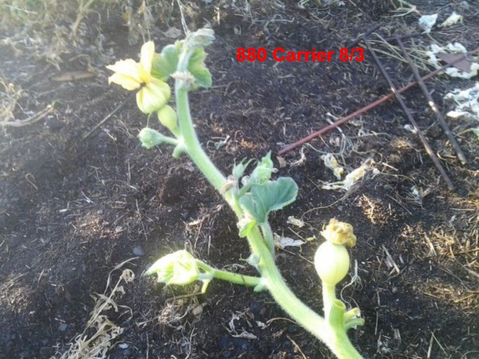 880 Carrier X First 1164 Carrie DOP 7/30 at 12'. A Second female at 13.5' was pollinated on 8/2 with a third 1164 Carrier. Will see which developes best.