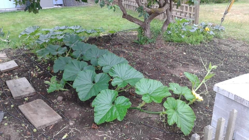 Still not a whole lot of hope for this one because the plant has no side vines. The leaves that it does have look nice though. I keep telling myself every year that I am going to stop trying to grow a Pumpkin under these trees but I can't help myself.
