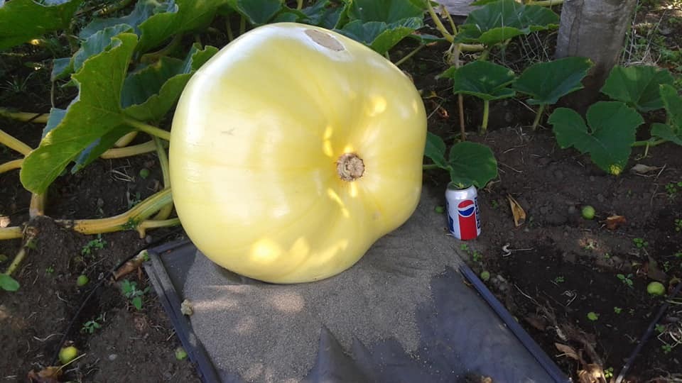 Day 28 on the 2059 Daletas. 61" circumference, 157" OTT, estimated weight 91 pounds. It's too bad It has that massive scar on top of it because it's looking like this pumpkin may end up orange.