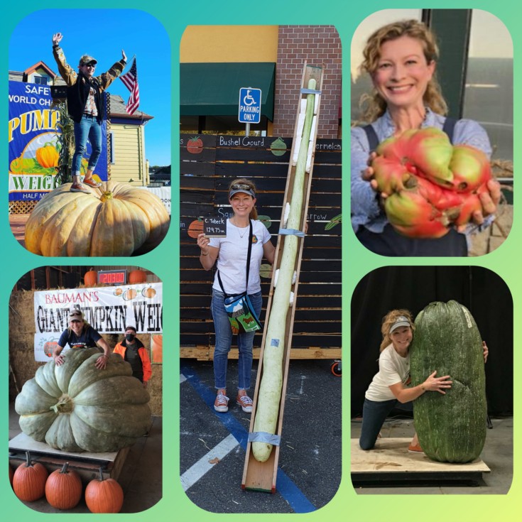 The top 5 fruits from the 2021 Tobeck haul: 2030 pound squash, 152.5 pound marrow, 7.19 pound tomato, 1738 pound pumpkin, and 129.75 inch long gourd.