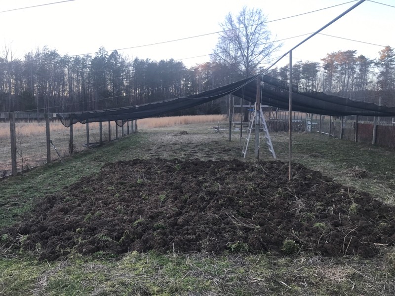 I finished up with the shade net today and after a few tries I got it so I can remove it somewhat easily. Now I need to put it away ugh. I saw some worms today turning the first plant site. Soil looks pretty nice. Main thing I still need 35 lbs epsom for each spot. I am going to feel this tomorrow, matter of fact I feel it right now:)