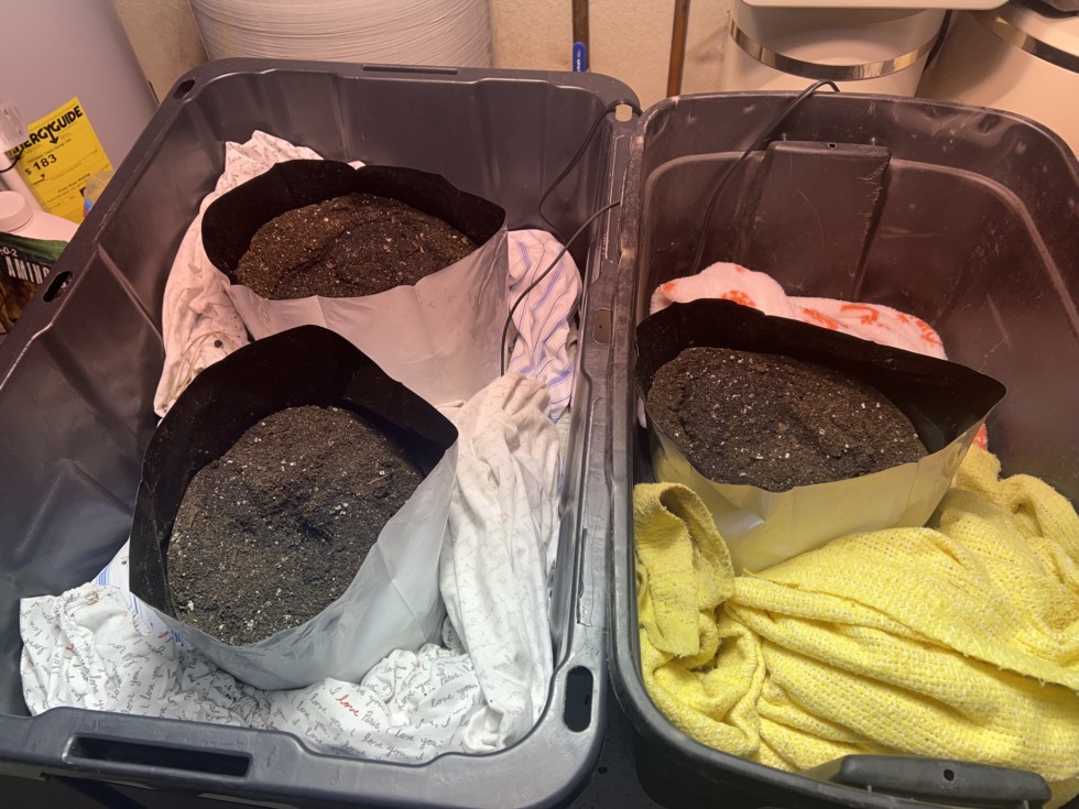 Bags of soil warming up