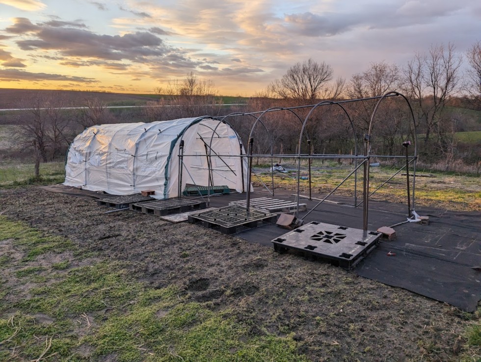 As feared the greenhouse didn't hold up to the 50+ mph winds we had with the storm. More wind coming, so think at this point will just close in the remaining half to start reheating things. Will add the other half back if the plant outgrows this part and the weather is cool enough that it still needs to be enclosed.