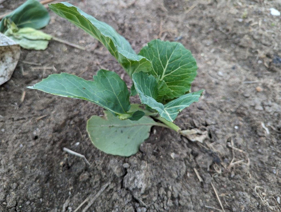 This is typical of most of the damage where the plants lost 1-3 of their bigger leaves. Installed so chicken wire around these to try to protect from further damage.