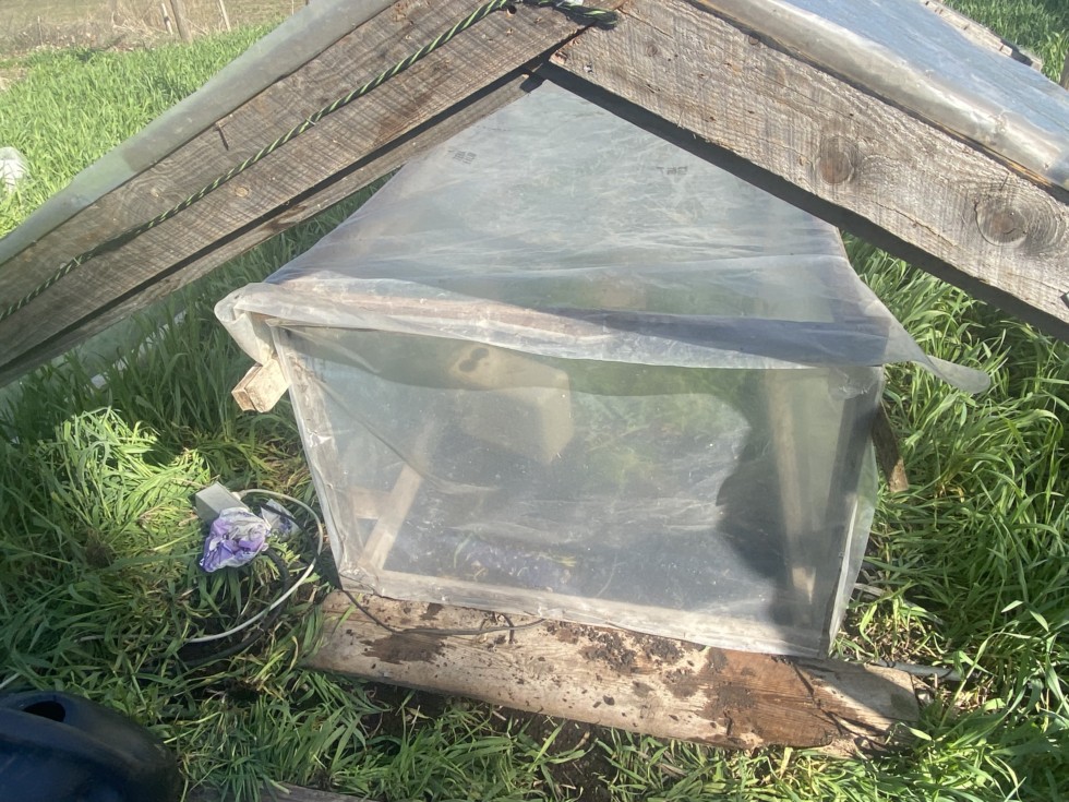 This shows the box inside the small cold frame. It's so much easier to keep the small plants warm
