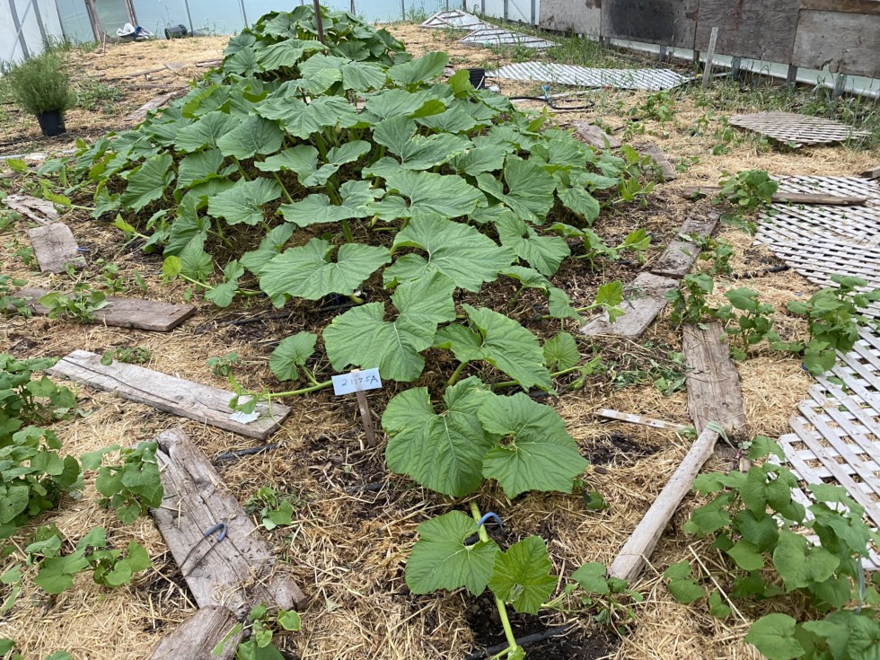 Last post was 2117.5 B. The 2117.5 A in greenhouse is way ahead of the others 16 feet out with at least double the leaves of the other plants. Only problem it is scorching in the sun so I we have to wet it often mid day.
