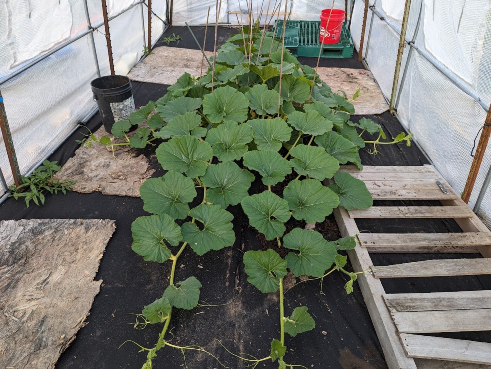 Close to pruning the first couple of secondaries at the back of the hut on the 1655.5. There's a blossom at 12 ft that we're going to pass as there's another showing at 15' which will have more secondaries behind it.
