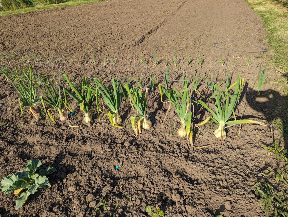 Giant onions don't seem to be getting a lot of top growth but the bulbs are getting bigger. Around the size of a baseball now.
