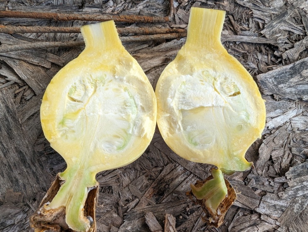 Second pollination on the 1655.5 looked like it was aborting so decided to cut and dissect for inspection. Not a clean cut, but looks like decent wall thickness.