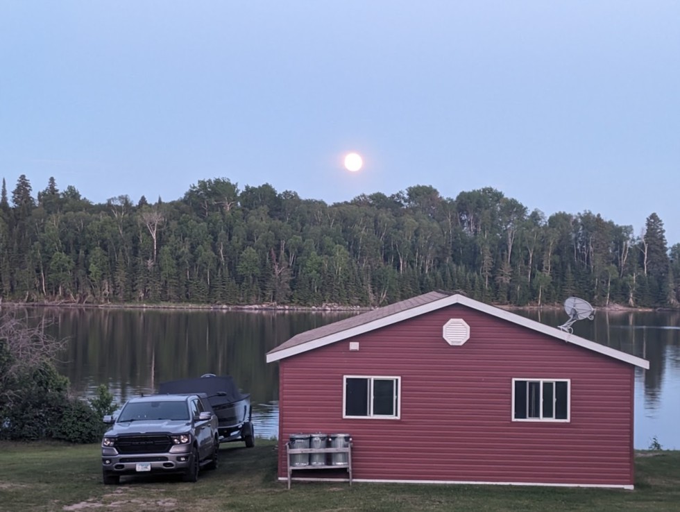 The week goes too fast. Looking out over the lake from the cabin porch on the last night at camp