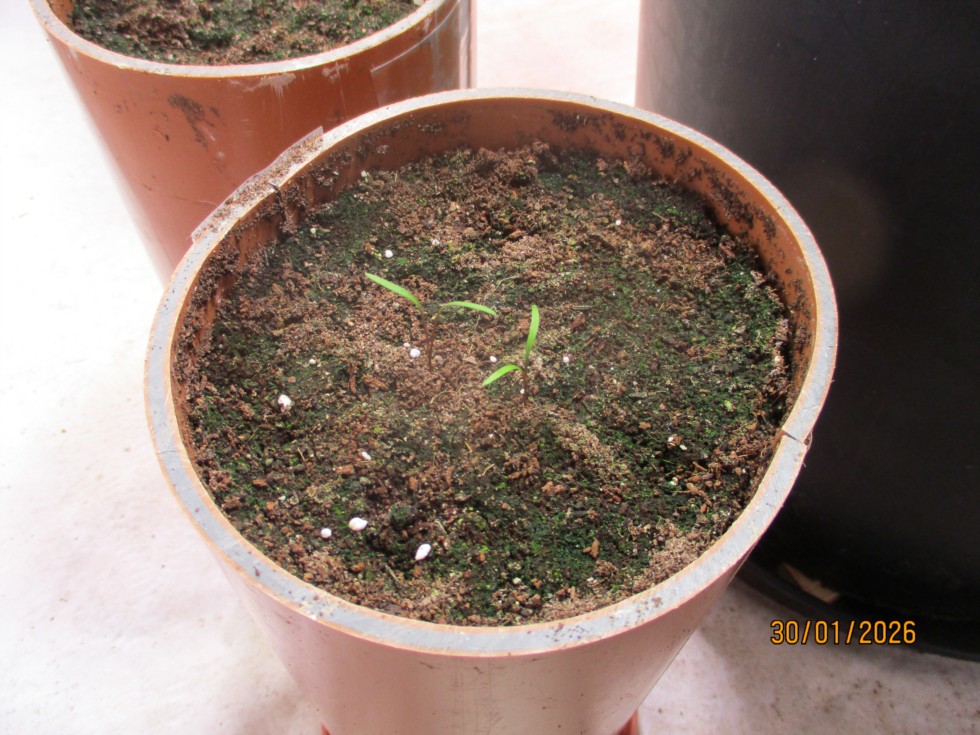 Carrots just germinating, will grow on for at least more 2months before planting out.