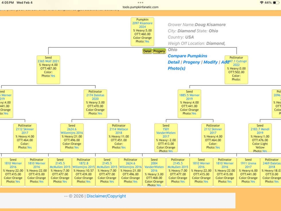 Here is the family tree of 2097 Kisamore (the other one I bought) the pumpkin one the far left is 1885.5 Werner the far right is 2096.5 Barron.