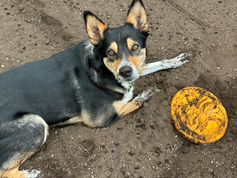 Cleo has been patiently supervising. Throwing the frisbee for her gives me a good excuse to take breaks. I throw about 100 frisbees for her every day!