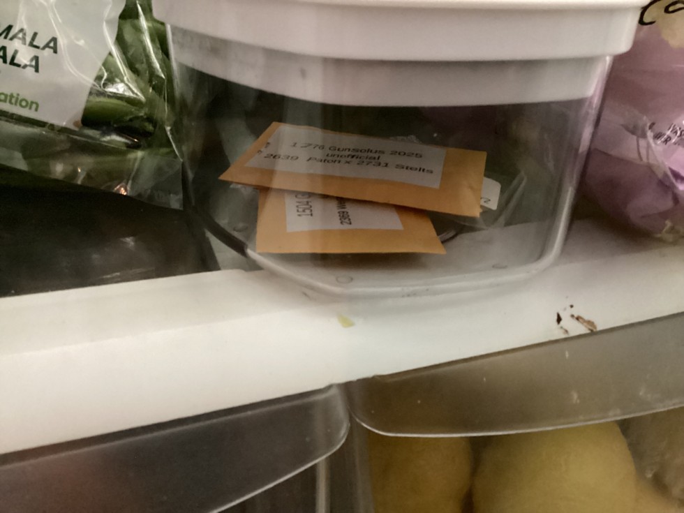 Well, finally my seeds arrived! I ordered the 2097 Kisamore 2024 DMG and 1776 Gunsolus 2025 DMG they arrived so I have 2 2097s and 3 1776s and guess what I got a gift pack of 1504 Gunsolus (2369 Werner x 2670 Thompson) more great ones. Thanks a lot Tyler for those seeds. Now I've got 8 seeds so enough for 3 or four plants or for future years (next year). I should have th�aken a pic before putting them in the vacuum container with the silica gels though.