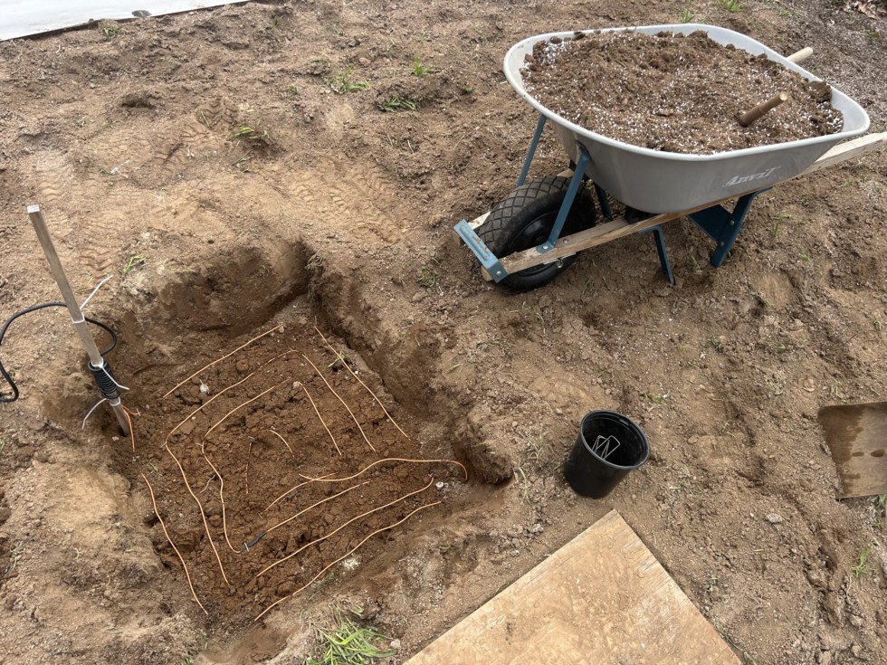 2. Mix in a bag of miracle grow perlite to the excavated soil. This both feeds and aerates the soil as it has a small amount of fertilizer in it. I also added a very small amount of coir based seed starter just to get rid of it. I actually don't want much OM near my stump since I want it to drain nicely.
