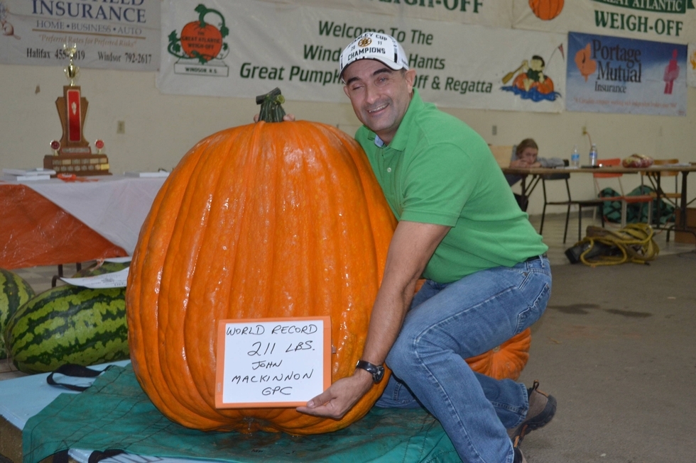 2014 - John MacKinnon and his 211 pound World Record Field Pumpkin!