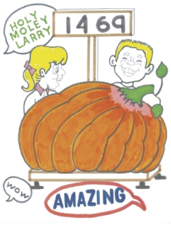 The 1469 took right off though and never paused. It averaged well over 40 lbs. per day at it's peak growth period. In mid august, the first of 2 large sag lines appeared but the fruit somehow made it intact to weigh-off day. When it was cut open we saw that the cracks were paper thin at the surface. There were over 600 seeds inside but only 180 mature ones. I believe the pumpkin was trying to grow much heavier but simply did not have quite enough food. Possibly the plant needed to be a little larger, or maybe it just needed a few good rains.
