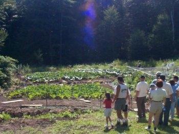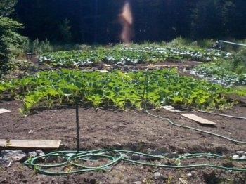 This an 865 Metler plant. Jim is addressing the crowd of people who came from the picnic to check out this plants. Throughout these photos you can see the boards that Jim walks on to help prevent soil compaction in his garden.