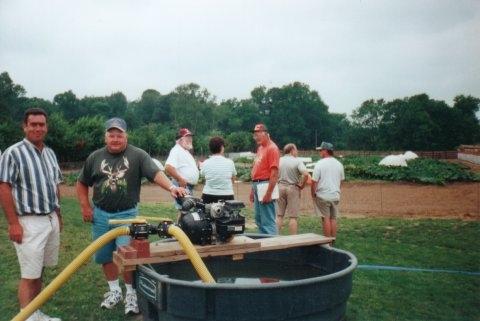 This is Winston Wyckoff's watering tank. Standing by it is Dave Stelts on the left and Gerry Rose on the right.