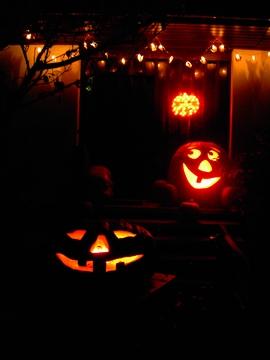 This picture shows my Halloween display in front of my front door. I really like these two giant pumpkin carvings... Some "normal sized" carved pumpkins will be added to the display today. It is unbelievable how many people stop to look at it or even to take photos... Happy Halloween!!!! Martin Reiss