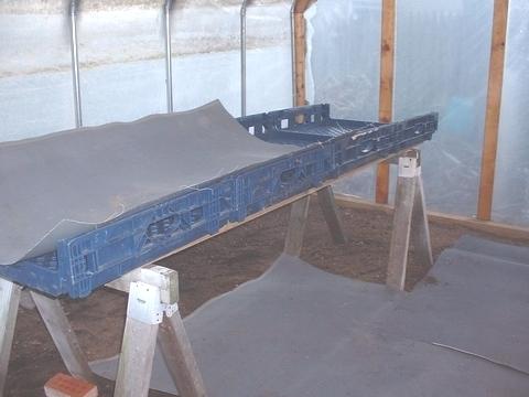 Made this today from junk. The thought is that the bread racks will support the Pulp Mill Fabric which will hold the soil. The contraption is 12' long x 3 ' wide.