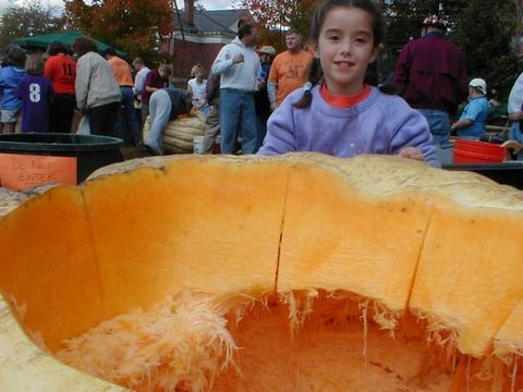A cut open view of my 1074-03 (898Knauss x 790Daletas) Walls where 12" thick at the shoulders. Thats why she weighed heavy! Thats Evelyn Hanneman with the smile. She was helping make the pumpkin boats for the Regatta!