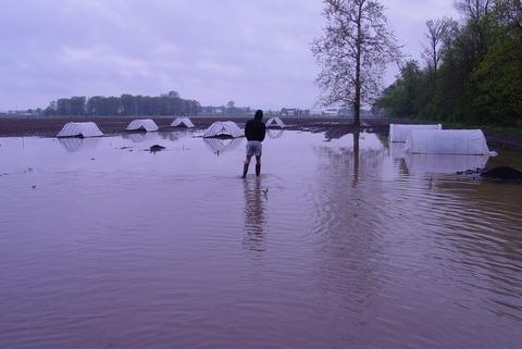 Here is another shot of the patch May 9, 2003. The closest greenhouse on the right is where the clones were. I'm standing in the patch trying to figure out what to do. More than likely I was planning to give up.