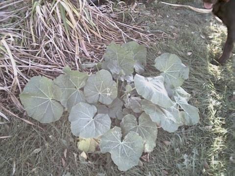 Can anybody guess what kind of plant this is? well no its not a baby pumpkin plant, its a late summer seeding of hollyhocks, you know the flowers.