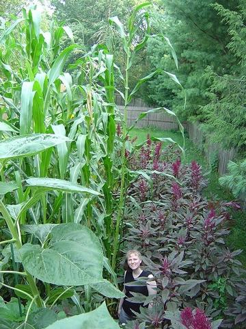 I took this picture standing on top of my 10 ft. ladder with my wife standing next to a ~15 ft. row of corn. Most of them still don't have any tassels yet; so hopefully I get some really big ones. We just had a terrible storm tonight and I lost quite a bit of my plants; but all of these corn plants survived.
