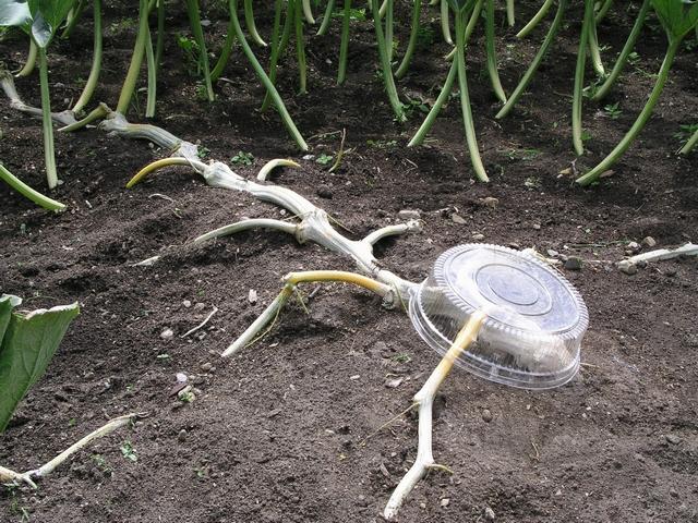 Joe Jutras was caught using these high-tech stump guards. They help keep the stump dry when watering the plant.