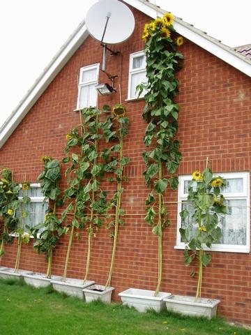I had sent some Bott's Strain seeds to Bernard Lavery. He grew them in 8 inch pots along the side of the house. Very impressive to have a sunflower this size grown, and only grown in a 8 inch planter. One of the sunflowers grew to over 17 ft. tall. Generally, Bott's Strain are single headed, but he has a few that are multi-headed. I've seen this a few times myself with my own plants.