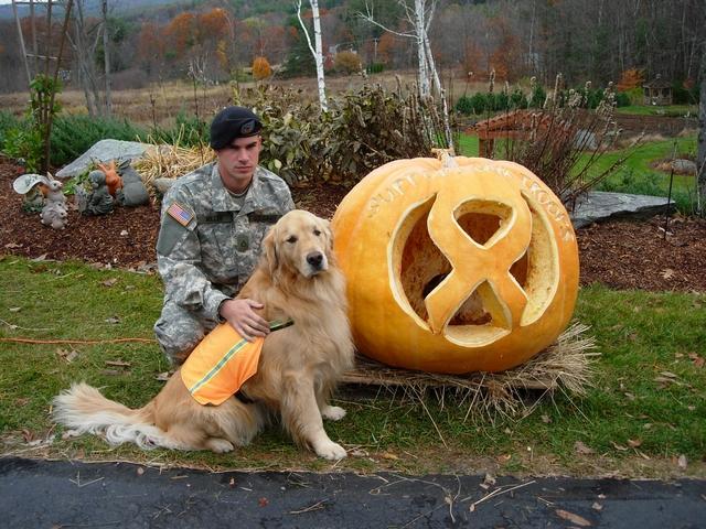 carved 532Beauchemin. Jason is home on leave from the US Army for ten days. He will leave to Iraq in three weeks for a one year deployment. It's fine young men like him that give us the freedom as Americans to enjoy our favorite past time, growing Giant Pumpkins! Please Prey for him...