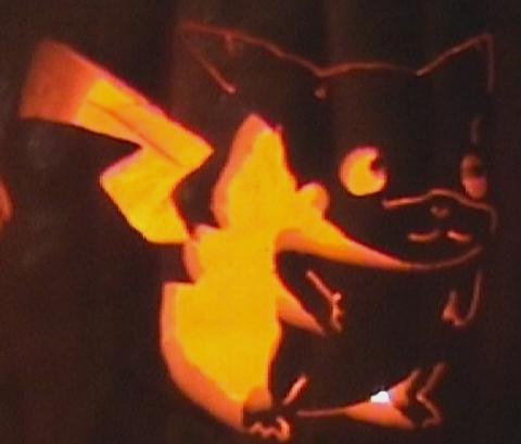 Pikachu was carved into my smaller 80-something pound pumpkin in 2000. I think more kids commented on Pikachu than on the 186 lb. Atlantic Giant. (For those of you who don't know Pikachu, it is a Pokemon character; very popular with the younger kids.)