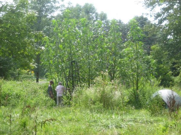 My friend, Jesse and his grandmother with his Giant Amaranth plants. The tallest plant is over 20 ft. tall