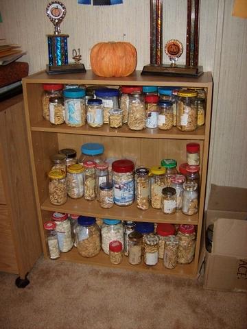 Seeds from about 80 of my pumpkins from over the years. Baby food jars have come in real handy to condense space.