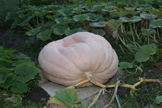 This pumpkin had an indent from the start. The indent got deeper as she grew bigger. The plant is from 1423Wallace07(M)x1149Pukos07(F)