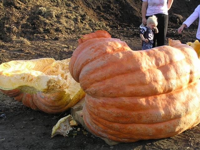 We split the 1568dmg Connolly08 in half with a backhoe to get the seeds out. Only one 12" diameter rot area under the stem. Very prolific pumpkin...Gottones of good seeds This is why a quick seed harvest is a must do thing, if anything wrong is detected on the pumpkin.