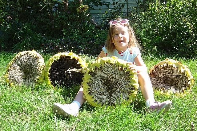 I cut down some sunflowers at my garden plot at my job in Princeton, NJ. All of the heads were between 14 to 15 inches across. That's really good considering I didn't take care of them. I didn't do a single thing with these sunflowers. I just threw them in thr spring and harvested them this fall.