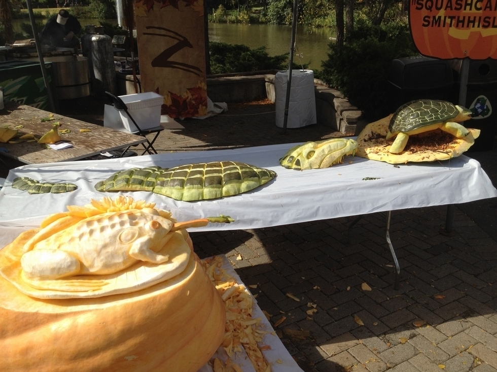 These are my carvings from Saturday (squash) & Sunday (pumpkin).