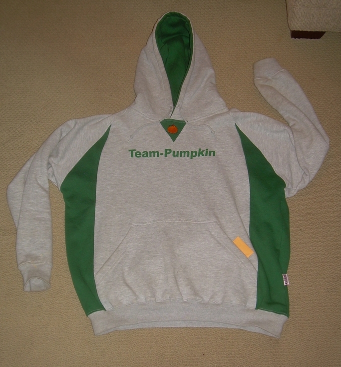 Here is a picture of the Team-Pumpkin sweatshirt that will be available for sale for a limited time. If you notice the left-hand side of the pouch there is a smaller pocket that is perfect for placing a recently received seed from a generous grower;-)