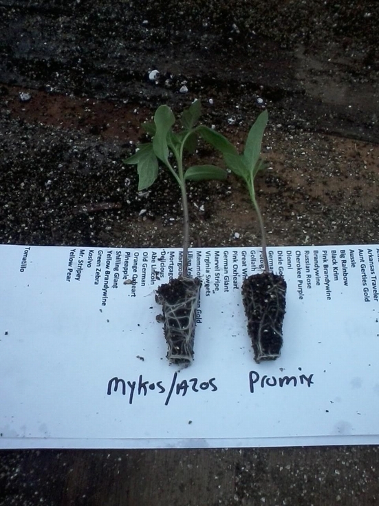 The proof is in the pudding..... Two identical seed tomatoes.... one grown with AZO's and Mycos... the other...just plain ProMix... Guess I can see whatZ what....
