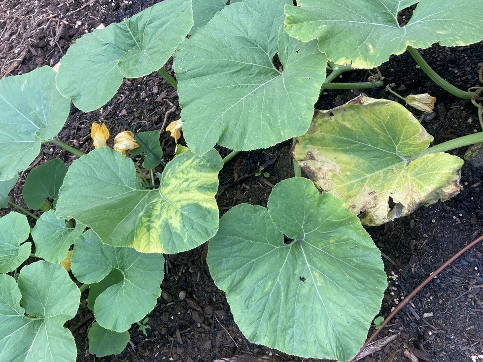 lesions on other plants in the garden. jarradhale variety pumpkin i think